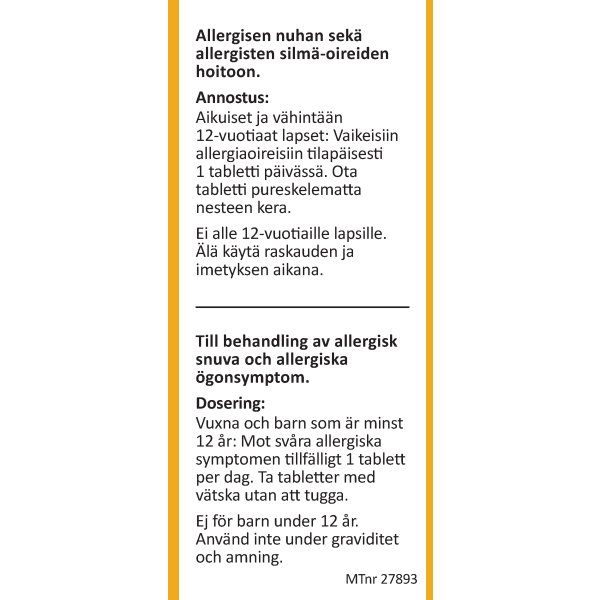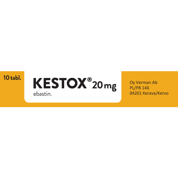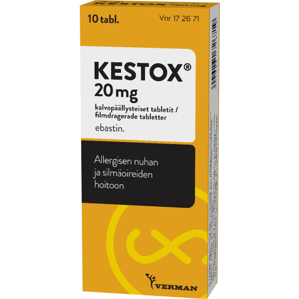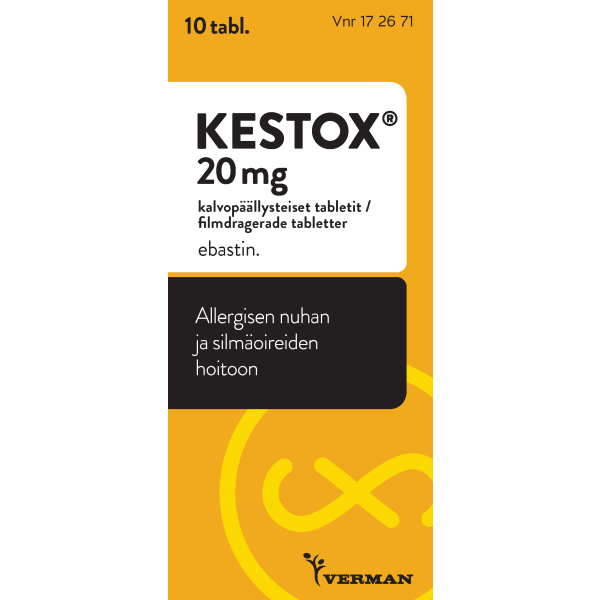 Kestoxin vaikuttava aine ebastiini on antihistamiini ja sitä käytetään allergisen nuhan vaikeiden oireiden helpottamiseen, mukaan lukien tapauksissa, joissa on lisäoireena allerginen silmän sidekalvotulehdus. Pitkäaikaiseen käyttöön vain lääkärin määräyksestä. Ei alle 12-vuotiaille lapsille.