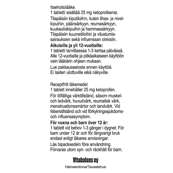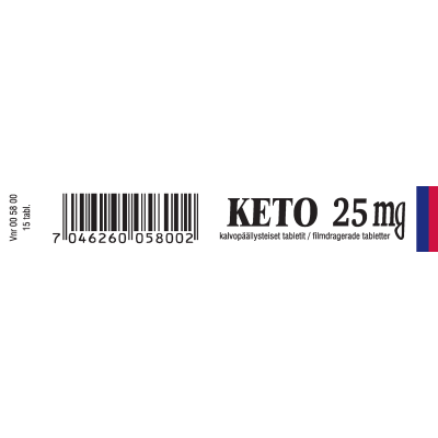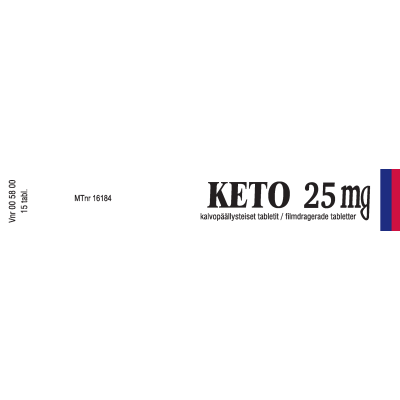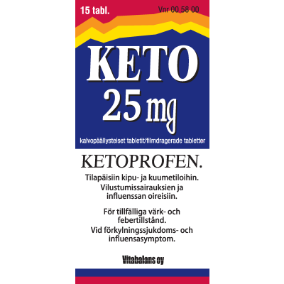 Keto-tabletteja käytetään tilapäisesti kiputiloihin, kuten lihas- ja nivelkipuihin, päänsärkyyn, reumasärkyyn, kuukautiskipuihin tai hammassärkyyn sekä tilapäisesti kuumeeseen ja muihin nuhakuumeen ja influenssan oireisiin. Alle 12-vuotiaille ja pitkäaikaiseen, yli viikon kestävään käyttöön vain lääkärin määräyksestä.