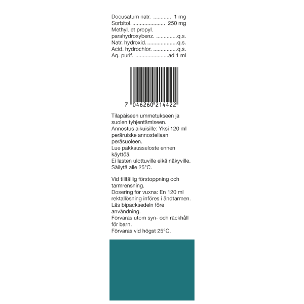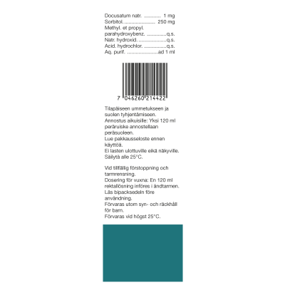 Aikuisille tehoaa yleensä yksi 120 millilitran peräruiske. Hankalammissa tapauksissa niitä voidaan antaa kaksi. Lapsille lääkärin ohjeen mukaan (lapsille riittää 120 ml:n ruiske tai osa siitä).