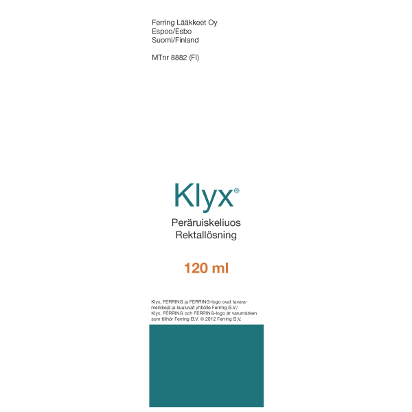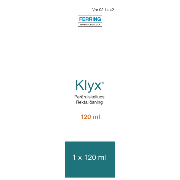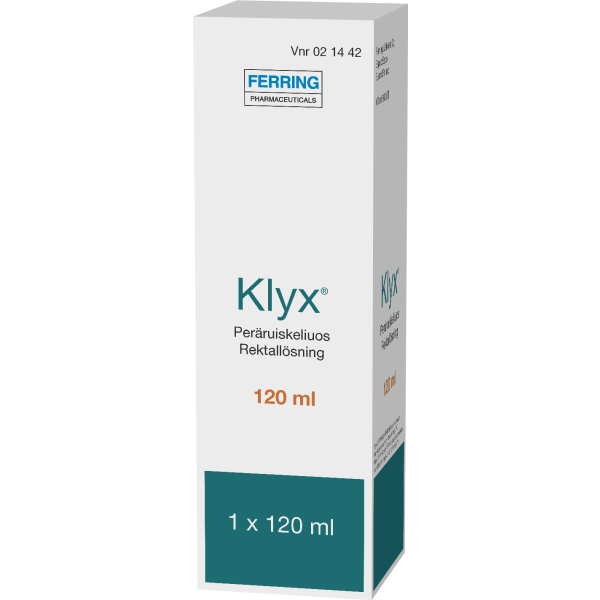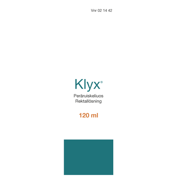 Klyx sisältää dokusaattinatriumia ja sorbitolia ja sitä käytetään tilapäisen ummetuksen hoitoon ja suolen tyhjentämiseen ennen tähystystä, lantioseudun röntgentutkimusta sekä synnytystä. Klyx pehmentää ulostetta lisäämällä sen vesipitoisuutta. Kova uloste pehmenee ja edesauttaa suolen tyhjentymistä häiritsemättä suolen normaalia refleksitoimintaa. Lapsille ja pitkäaikaiseen käyttöön vain lääkärin ohjeen mukaan.