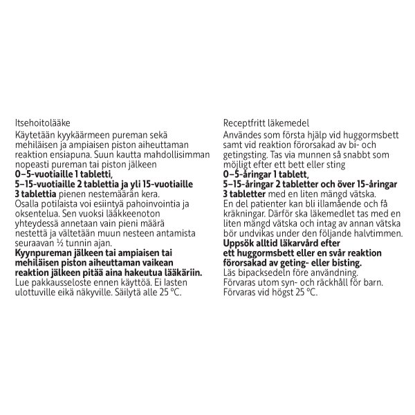 Tabletteja ei saa käyttää muuhun tarkoitukseen, esim. allergiaoireiden jatkuvaan hoitoon