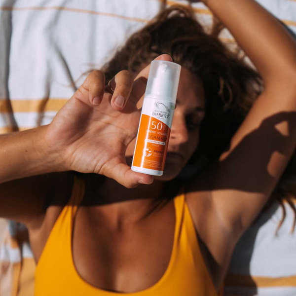 Alga Maris aurinkovoide kasvoille SPF50 on kevyt ja luonnollinen aurinkosuojavoide kasvoille. Kasvojen, kaulan ja dekolteen herkälle iholle. Voide on koostumukseltaan kevyt ja helposti levittyvä, joten voit levittää aurinkovoiteen päälle myös meikin. Nopean imeytyvyyden sekä kosteuttavan ja rauhoittavan koostumuksen ansiosta voit käyttää tätä voidetta kesällä päivävoiteen asemasta! Vedenkestävä voide antaa iholle keskivahvan suojan UV-säteilyltä. Voide ei tahmaa tai jätä jälkeensä valkoista pintaa ja ilmatiivis pumppupullo takaa tuotteen hygieenisyyden.
