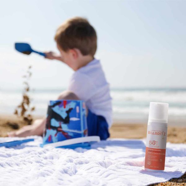 Hajusteeton ja täysin fysikaalinen Laboratoires de Biarritz Baby & Child Sun Cream aurinkosuojavoide lapsille erittäin korkealla aurinkosuojalla SPF50+. Soveltuu koko perheen käyttöön, myös aurinkoherkille aikuisille. Soveltuu käytettäväksi kuuden kuukauden iästä lähtien.