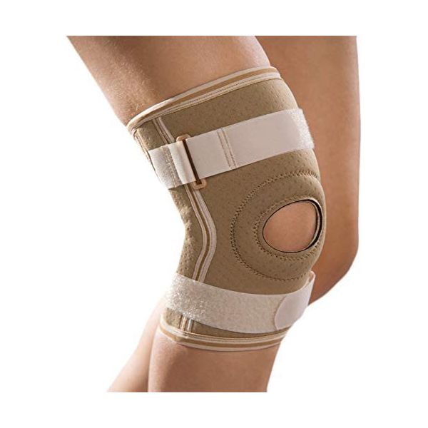 Knästöd med öppen patella och skenor avlastar och stabiliserar knäskålen vid generella knäskålsproblem.