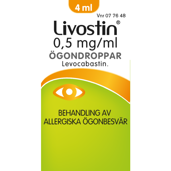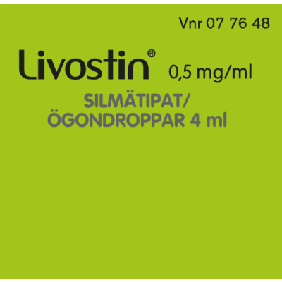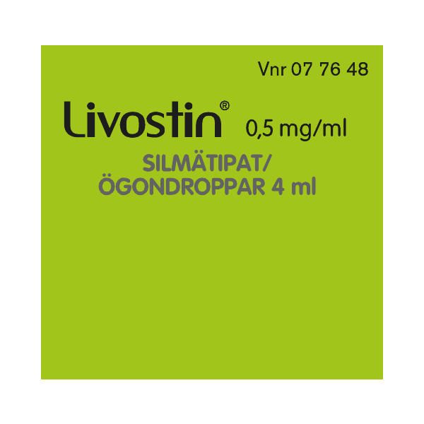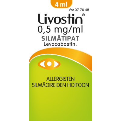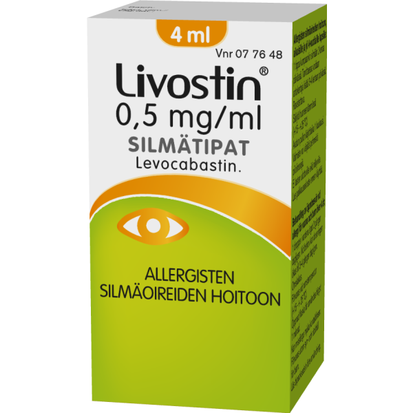 Livostin-silmätipat lievittävät nopeasti ja pitkävaikutteisesti histamiinin aiheuttamia silmävaivoja, kuten kutinaa, punoitusta, silmäluomien turvotusta ja silmien vetistämistä. Sitä käytetään mm. heinien, siitepölyn, homeen, pölyn tai muiden aineiden aiheuttamiin allergisiin silmäoireisiin, Alle 4-vuotiaille ja pitkäaikaiseen käyttöön vain lääkärin ohjeen mukaan.