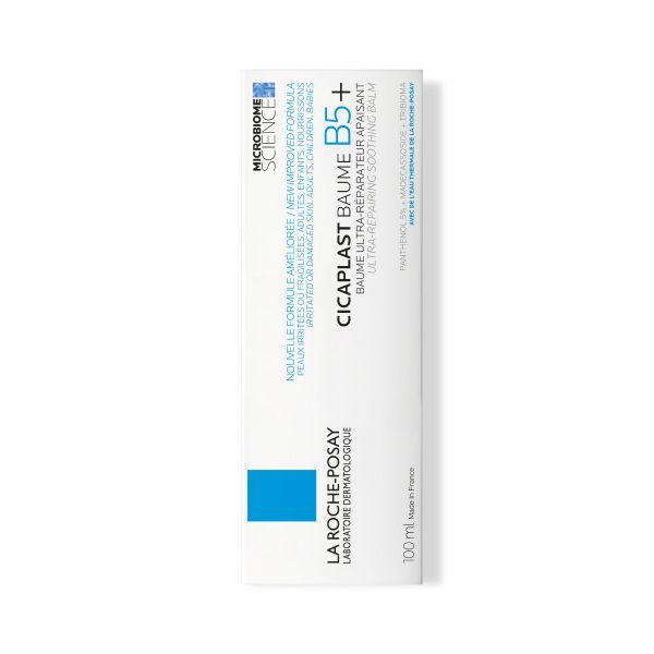 La Roche-Posay Cicaplast Baume B5+ -lugnande, återställande och skyddande kräm för torra och irriterade hudområden. Passar för daglig användning för vuxna, barn och spädbarn (över 3 månader). En fyllig och närande kräm som innehåller [MADECASSOSIDE] + [B5-vitamin] samt den nya Tribioma-ingredienser som är en unik prebiotisk ingredienskombination. Känns omedelbart lugnande. Hjälper till att stärka och återställa huden och dämpa synligheten av ärr. Formuleringen, utvecklad med hjälp av mikrobiomvetenskap, balanserar hudens mikrobiom och stöder hudens förnyelse.