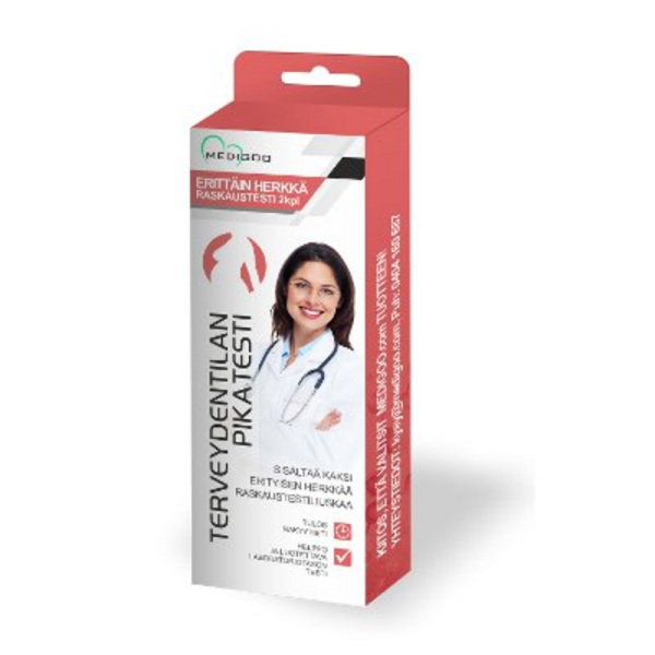 Mycket känslig test 10mlU/ml, kan påvisa graviditet redan 5-7 dagar efter befruktningsdatum. Testet är jämförbart med laboratorietest i noggrannhet. Resultat på 5 minuter. Om det finns två streck på stickan är resultatet positivt och om det finns ett streck är resultatet negativt. Vänta på resultatet efter testet i 3-4 minuter och tolka resultatet. Läs inte testet efter 10 minuter, eftersom resultatet kan vara osäkert. Testet är känsligt och upptäcker även tidig graviditet. Testet är endast avsett för kvinnor.