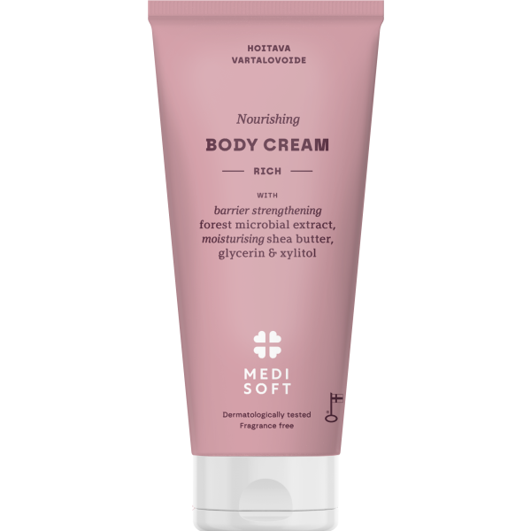 Hoitava, täyteläinen vartalovoide tekee ihosta sametinpehmeän. Metsämikrobiuute tukee ja vahvistaa ihon omaa suojakerrosta ja sheavoi, glyseroli sekä ksylitoli kosteuttavat tehokkaasti ja pitkäkestoisesti. Soveltuu myös atooppiselle iholle.