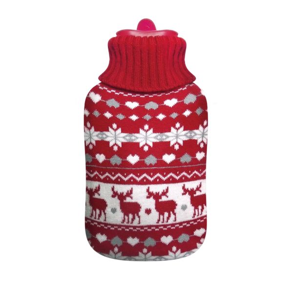 Kuumavesipullo, joka on päällystetty kodikkaalla ja lämpimällä neuleella. Lämmittämään vuodetta tai kehoa.