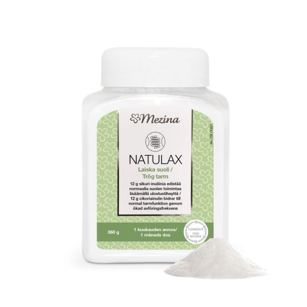 Natulax bidrar till en normal tarmfunktion genom att öka tömningsfrekvensen. Natulax innehåller det naturliga ämnet cikoria inulin som hjälper till en normal bakterieflora i tarmen vid ett dagligt intag på 12 g. Dagligt intag av inulin stödjer bildningen av positiva bifidobakterier i tjocktarmen. När tarmen fungerar normalt ökar tömningsfrekvensen och trög mage motverkas därmed.