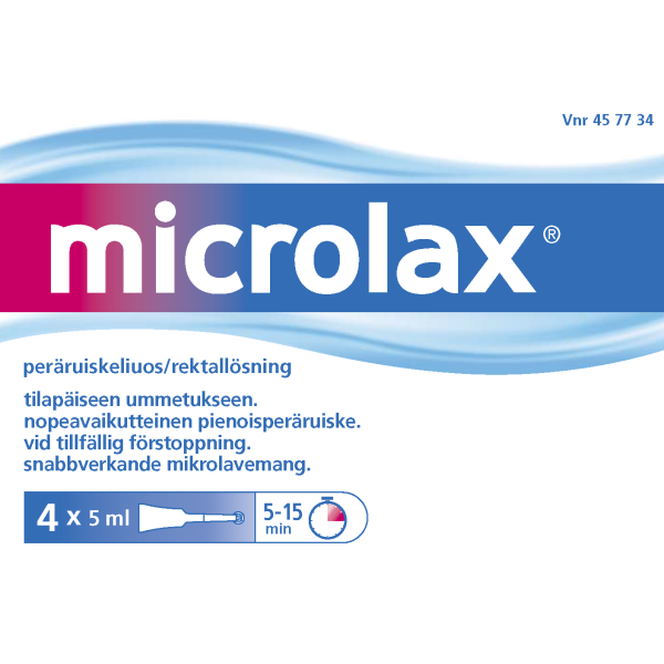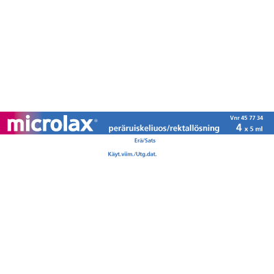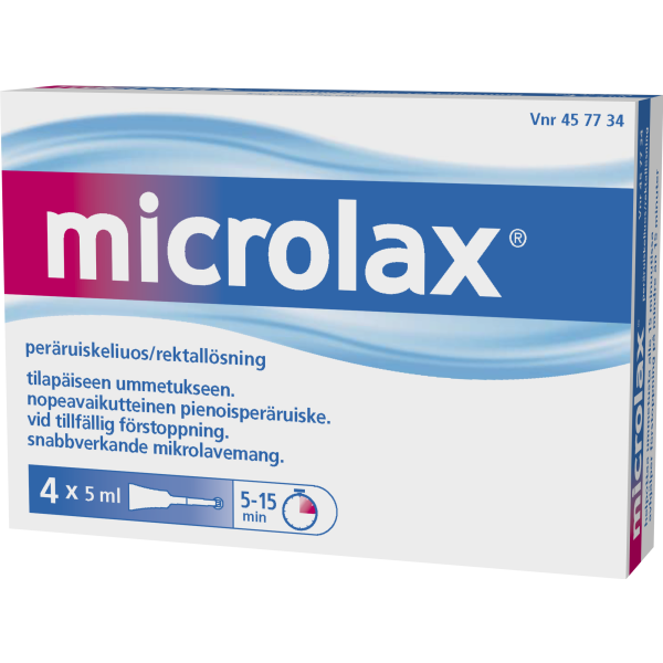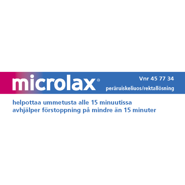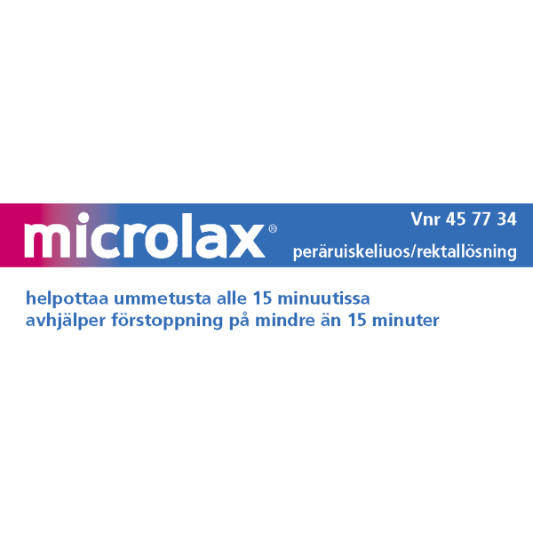 Microlax on nopeasti vaikuttava pienoisperäruiske, joka pehmentää kovan ulosteen ärsyttämättä kuitenkaan suolta.