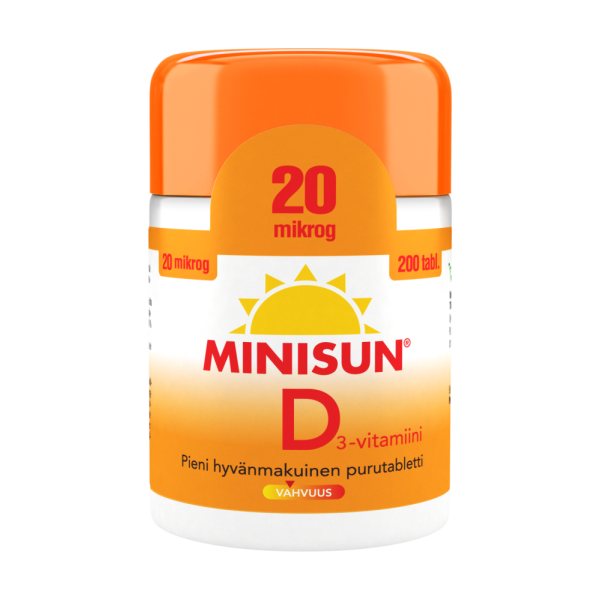 Minisun-tabletit sisältävät hyvin imeytyvää D3-vitamiinia. Hyvänmakuiset Minisun-tabletit voit imeskellä, pureskella, niellä tai murskata.