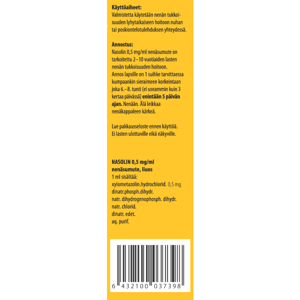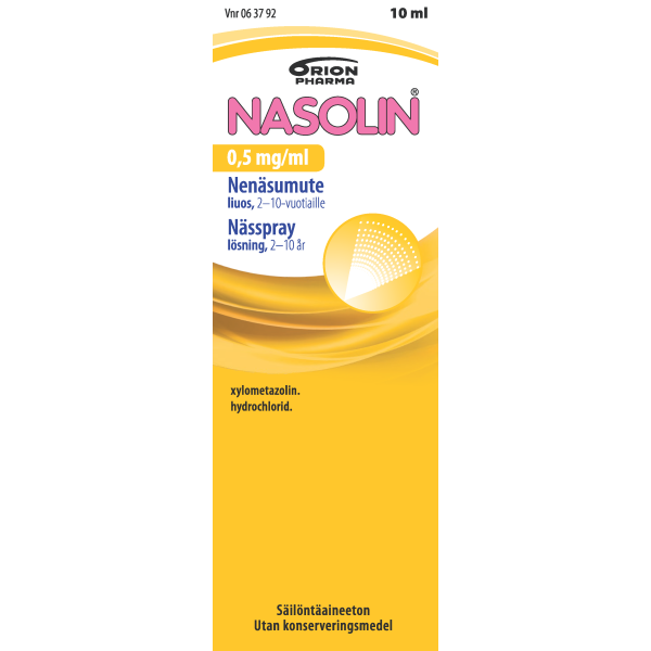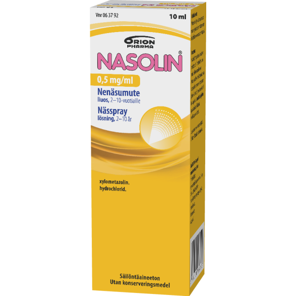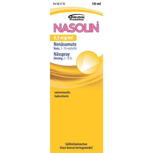 Nasolin on valmiste nuhaoireiden helpottamiseen flunssan aikana. Sen vaikuttava aine, ksylometatsoliini, vähentää nenän limakalvon turvotusta. Vaikutus alkaa nopeasti ja kestää 6–8 tuntia. Nasolin 0,5 mg/ml sumute soveltuu vain lyhytaikaiseen käyttöön 2-10 -vuotiaille lapsille. Sumutteet ovat säilöntäaineettomia.