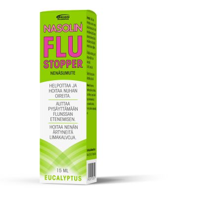 Nasolin FluStopper on täysin uudenlainen nenäsuihke. Heti flunssan ensioireisiin käytettynä se pysäyttää flunssan etenemisen ja lyhentää taudin kestoa. Suihke irrottaa limaa, huuhtelee pois taudinaiheuttajia sekä hoitaa ärtyneitä ja turvonneita nenän limakalvoja.