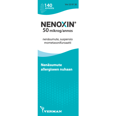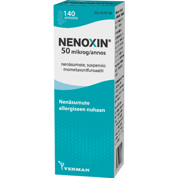 Nenoxin-nenäsumute sisältää mometasonifuroaattia, joka kuuluu kortikosteroidien lääkeaineryhmään. Se lievittää nenässä tulehdusta (turvotusta ja ärsytystä), aivastelua, kutinaa, nenän tukkoisuutta tai vuotamista vähintään 18-vuotiailla aikuisilla. Pitkäaikaiseen käyttöön ja alle 18-vuotiaille lapsille vain lääkärin ohjeen mukaan.