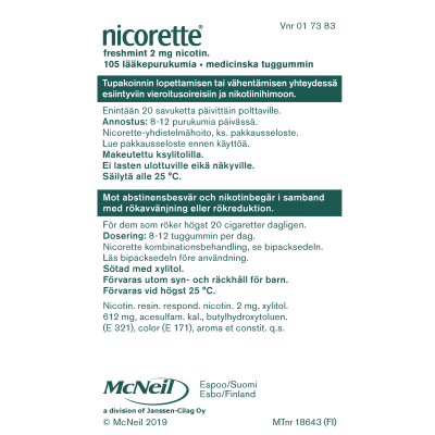 Nicorette®-purukumi sisältää nikotiinia, joka vapautuu suun limakalvojen kautta elimistöön ja helpottaa vieroitusoireita.