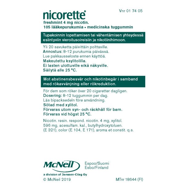 NICORETTE FRESHMINT lääkepurukumi 4 mg 105 fol