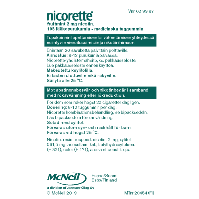 NICORETTE FRUITMINT lääkepurukumi 2 mg 105 fol