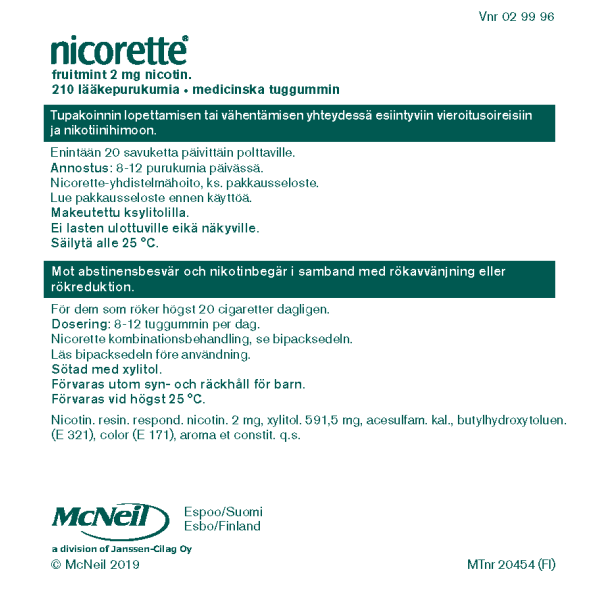 NICORETTE FRUITMINT lääkepurukumi 2 mg 210 fol