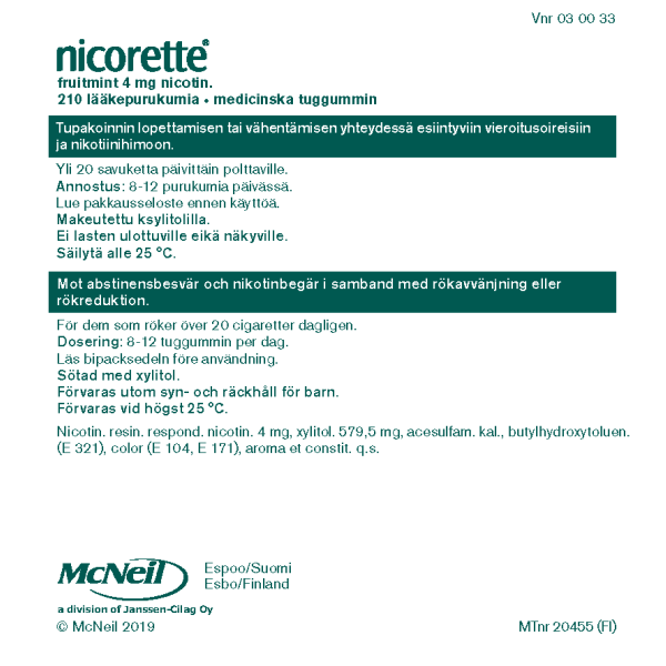 NICORETTE FRUITMINT lääkepurukumi 4 mg 210 fol