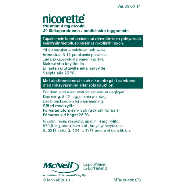 NICORETTE FRUITMINT lääkepurukumi 4 mg 30 fol