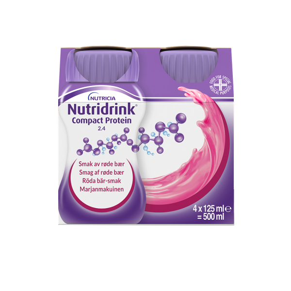 Kliininen ravintovalmiste sairauteen liittyvän vajaaravitsemuksen ruokavaliohoitoon. Nutridrink Compact Protein on runsaasti proteiinia ja energiaa sisältävä, tiivistetymmässä muodossa oleva pirtelömäinen täydennysravintojuoma. Gluteeniton ja vähälaktoosinen (<0,35 g/100 ml).
