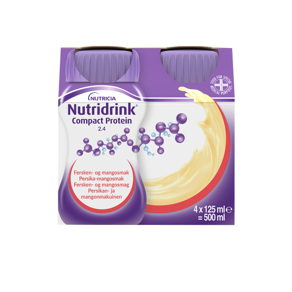 Kliininen ravintovalmiste sairauteen liittyvän vajaaravitsemuksen ruokavaliohoitoon. Nutridrink Compact Protein on runsaasti proteiinia ja energiaa sisältävä, tiivistetymmässä muodossa oleva pirtelömäinen täydennysravintojuoma. Gluteeniton ja vähälaktoosinen (<0,35 g/100 ml).