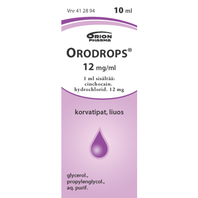 Orodrops-korvatippoja käytetään korvakivun tilapäiseen lievitykseen. Valmisteen vaikuttava aine on sinkokaiini. Se on paikallisesti käytettävä puudute, joka lievittää kipua. Pitkäaikaiseen käyttöön vain lääkärin ohjeen mukaan.