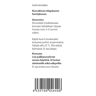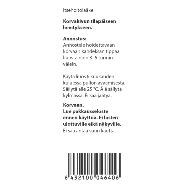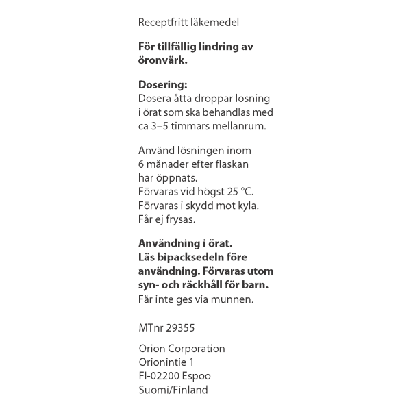 Orodrops-valmistetta käytetään korvakivun lyhytaikaiseen lievitykseen. Jos kipu jatkuu tai uusiutuu, ota yhteys lääkäriin