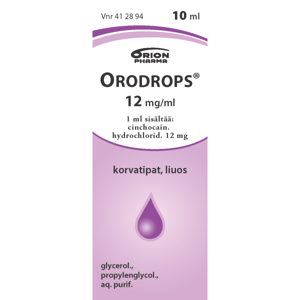 Orodrops-korvatippoja käytetään korvakivun tilapäiseen lievitykseen. Valmisteen vaikuttava aine on sinkokaiinihydrokloridi. Se on korvaan paikallisesti käytettävä puudute, joka lievittää kipua. Pitkäaikaiseen käyttöön vain lääkärin ohjeen mukaan.