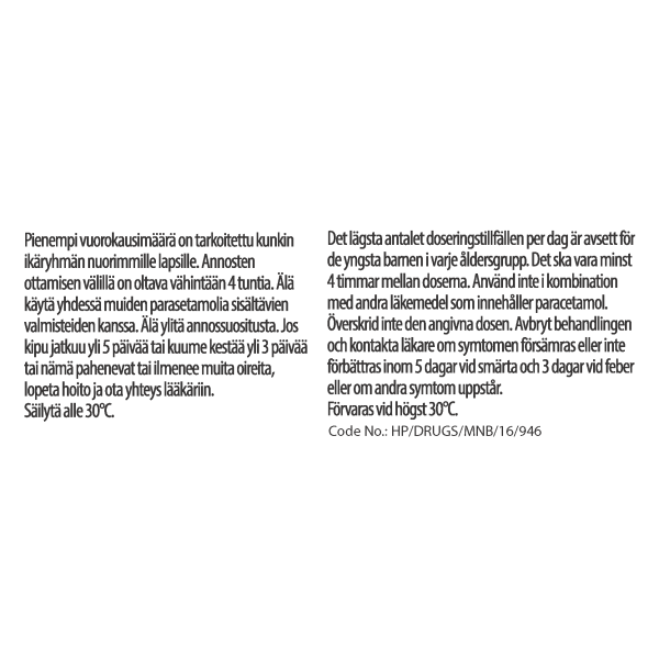 Aikuisten ja vähintään 6-vuotiaiden lasten lievän tai kohtalaisen kivun ja/tai kuumeen hoito.