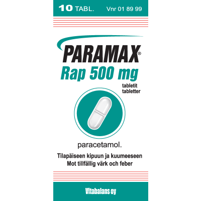 Paramax Rap 500 mg–tabletteja käytetään tilapäisesti kuumeen alentamiseen sekä lievien ja kohtalaisten kiputilojen oireenmukaiseen hoitoon kuten päänsärkyyn, hammassärkyyn, kuukautiskipuihin, lihas- ja nivelkipuihin sekä leikkausten jälkeiseen kipuun.