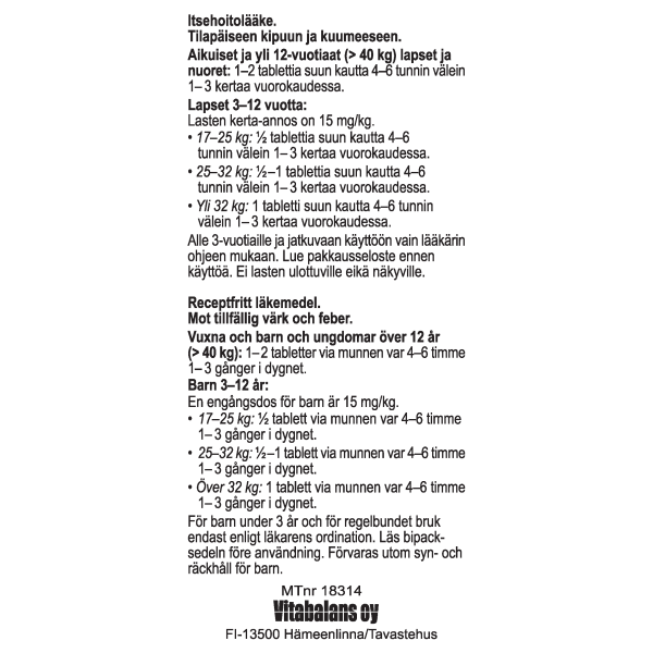 Yli 32 kg:n painoisille lapsille 1 tabletti korkeintaan 3 kertaa päivässä.