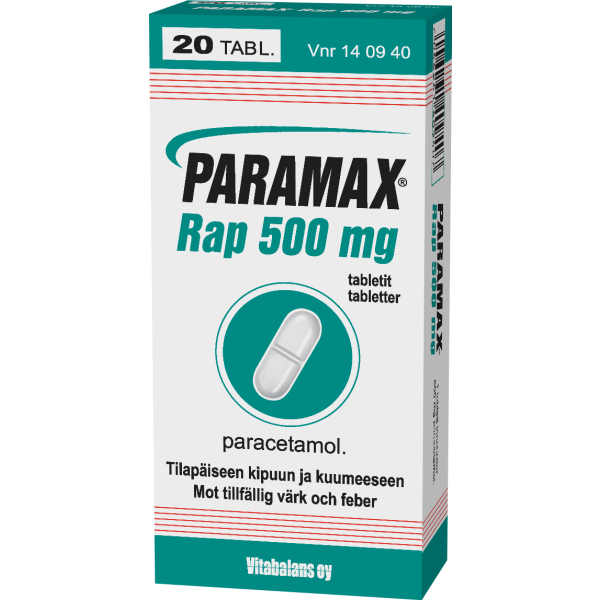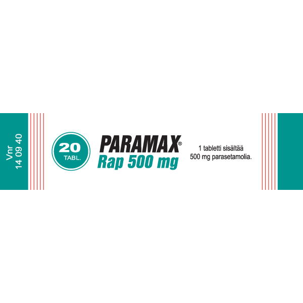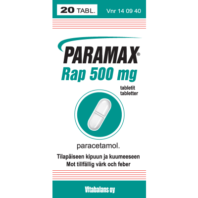 Paramax Rapin vaikuttava aine on parasetamoli, joka on hyvin siedetty kipulääke kuumeen ja kivun oireenmukaisessa hoidossa. Parasetamoli ei ärsytä ruoansulatuskanavaa, joten myös maha- ja pohjukaissuolihaavapotilaat voivat käyttää sitä. Alle 32-kiloisille ja jatkuvaan käyttöön vain lääkärin ohjeen mukaan. Alle 32-kiloisille lapsille on saatavilla Paramax Junior 250 mg tabletti.