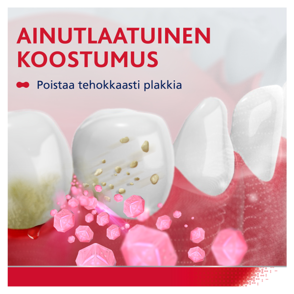 Harjaa hampaat kahdesti, korkeintaan kolmesti päivässä. Niele mahdollisimman vähän ja sylje pois. Jos ärsytystä ilmenee, lopeta tuotteen käyttö. Kerro mahdollisimman pian hammaslääkärille tai lääkärille, jos suusi tai kasvosi turpoavat. Ei alle 12-vuotiaille lapsille.