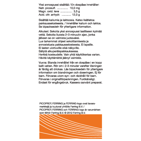 Picoprep jauhe sisältää natriumpikosulfaattia, joka on suolen liikkeitä tehostava ulostuslääke. Picoprepin sisältämä magnesiumsitraatti suurentaa suolen sisällön nestemäärää mikä edistää suolen tyhjenemistä.