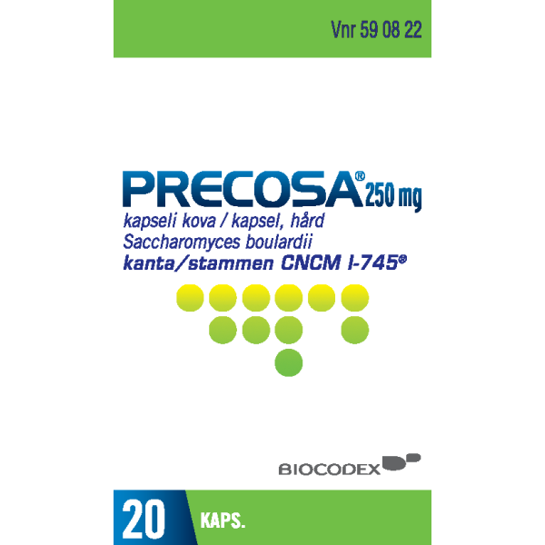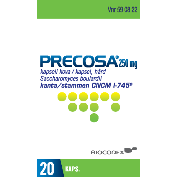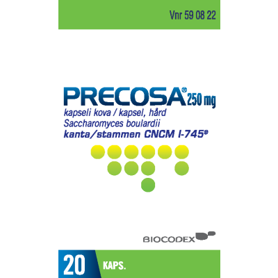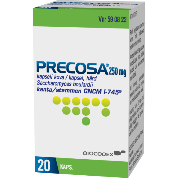 Precosaa käytettään itsehoidossa ripulin hoitoon sekä antibioottihoidon aiheuttamiin suolen tulehduksiin/ripulitiloihin ja antibioottihoidon aikana estämään ripulia. Precosa sisältää kylmäkuivattua hiivasientä (Saccharomyces boulardii), joka estää bakteerien haitallisia vaikutuksia suolen limakalvolla. Precosa korjaa mikrobiston epätasapainoa.