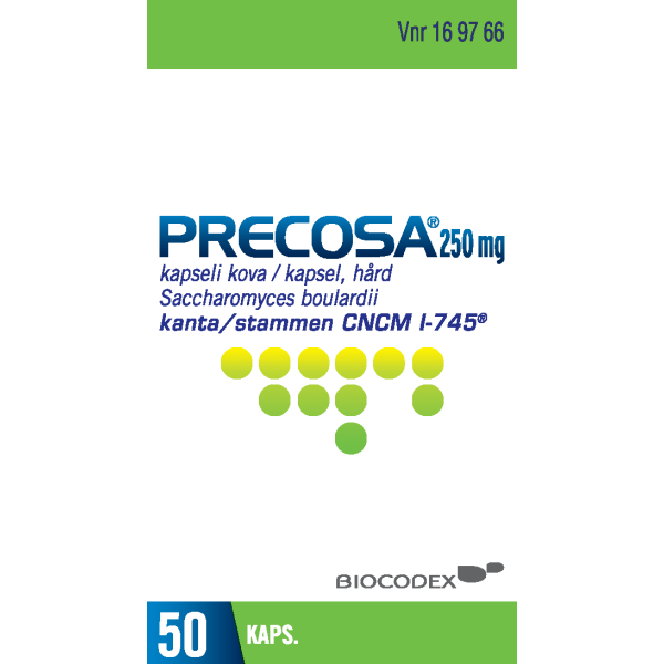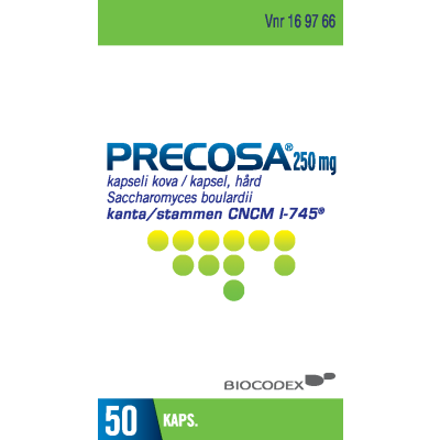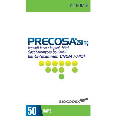 Precosaa käytettään itsehoidossa ripulin hoitoon sekä antibioottihoidon aiheuttamiin suolen tulehduksiin/ripulitiloihin ja antibioottihoidon aikana estämään ripulia. Precosa sisältää kylmäkuivattua hiivasientä (Saccharomyces boulardii), joka estää bakteerien haitallisia vaikutuksia suolen limakalvolla. Precosa korjaa mikrobiston epätasapainoa.