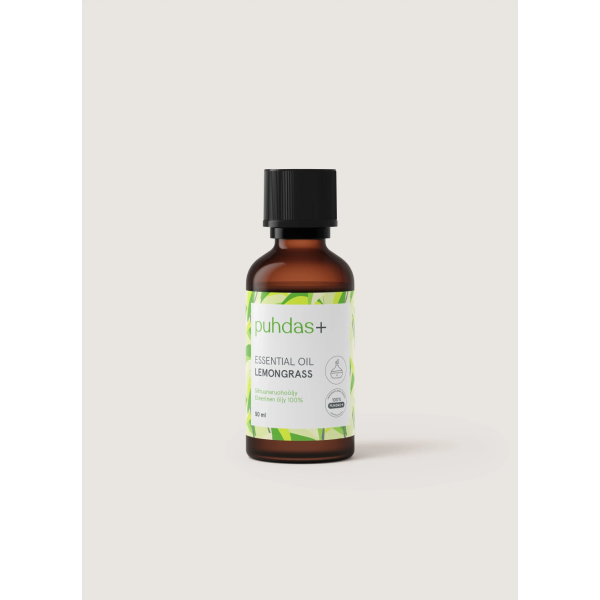 Puhdas+ 100 % Premium Essential Oil Lemongrass on raikkaan sitruksinen ja kevyen yrttinen eteerinen öljy, joka tunnetaan puhdistavasta ja virkistävästä vaikutuksestaan. Sitruunaruohoöljyä käytetään aromaterapiassa selkeyttämään mieltä, raikastamaan huoneilmaa ja tukemaan energistä oloa.