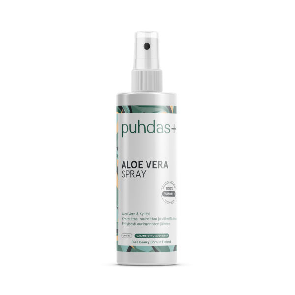 Puhdas+ Aloe Vera spray innehåller ekologisk aloe vera som mjukar upp, återfuktar och lugnar huden. Sprayen är lättanvänd och snabbt absorberande. Aloe Vera som ingår i produkten svalkar huden efter exempelvis solande, hårborttagning och rakning. Aloe Vera-sprayen passar även att använda som ansiktsvatten.