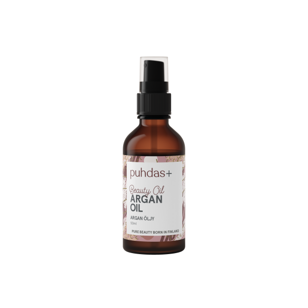 Arganöljy on luokiteltu maailman hienoimmaksi ja ainutlaatuisimmaksi öljyksi. Se sisältää antioksidantteja ja E-vitamiineja. Ylellinen öljy ravitsee ja uudistaa ihoa parantaen ihon elastisuutta, ehkäisten ryppyjen ja juonteiden syntymistä. Sopii myös herkälle iholle. Ei sisällä parabeeneja eikä mineraaliöljyjä.