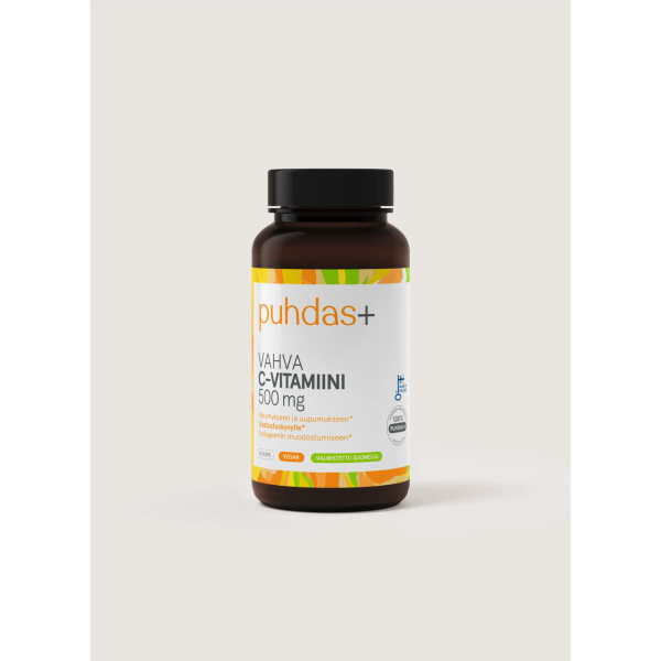 Puhdas+ Vahva C-vitamiini on kotimainen, laadukas ja luotettava valinta, kun haluat lisäboostia vastustuskykyyn, energiaan ja ihon hyvinvointiin – ilman turhia lisäaineita.