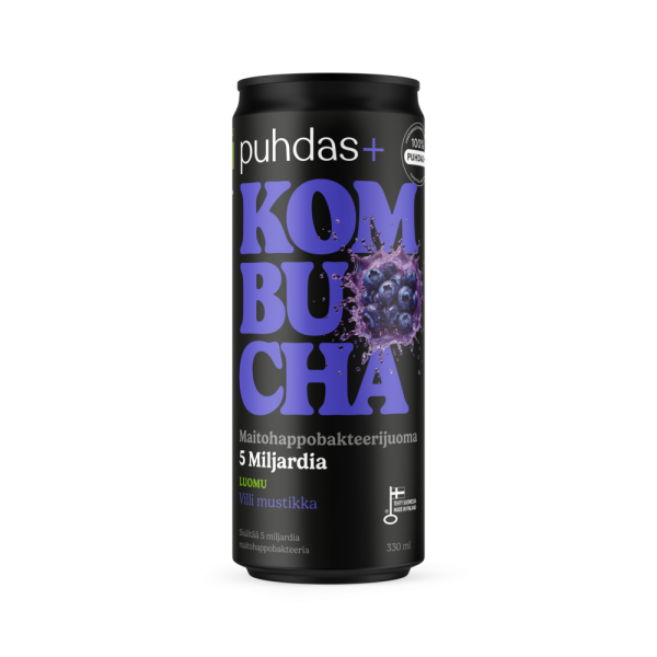 Puhdas+ Luomu Kombucha Villi Mustikka 330 ml