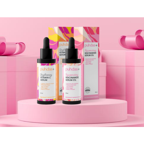 C-vitamiini seerumi: Seerumi sisältää C-vitamiinia, joka on tunnettu erinomaisista antioksidanttisista ominaisuuksistaan. C-vitamiini häivyttää ikääntymisen merkkejä sekä vaalentaa pigmenttimuutoksia ja ehkäisee uusien syntymistä. C-vitamiiniseerumi tekee ihostasi kimmoisan ja pehmeän.
