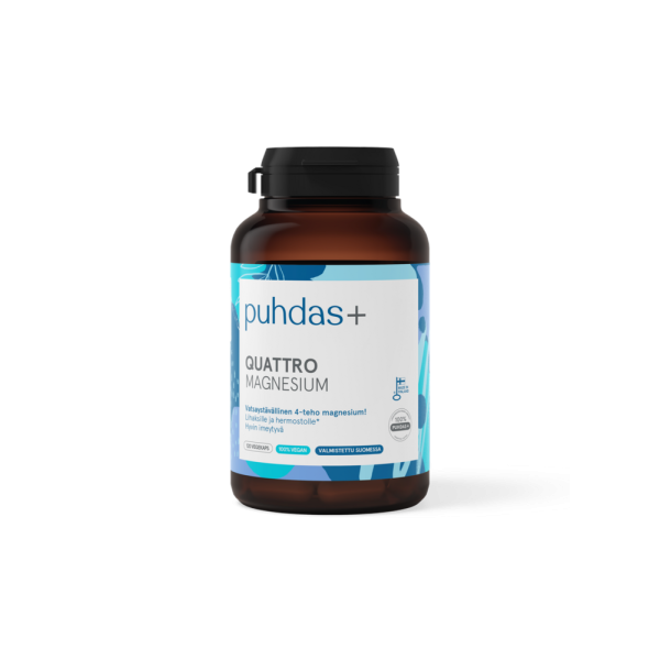 Puhdas+ Quattro Magnesium on 4-tehoinen, koska se sisältää neljää tehokasta magnesiumin muotoa.
