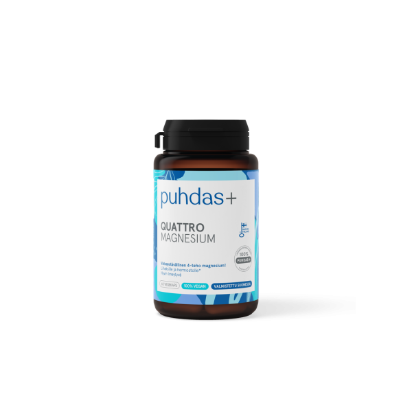 Puhdas+ Quattro Magnesium är 4-effektiv, eftersom den innehåller fyra former av magnesium.