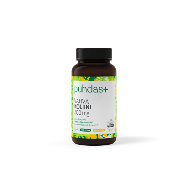Puhdas+ Vahva Koliini 300 mg on laadukas ja tehokas ravintolisä, joka sisältää reilun annoksen koliinia helposti hyödynnettävässä muodossa. Koliini on elimistölle välttämätön ravintoaine, joka tukee maksan normaalia toimintaa, rasva-aineenvaihduntaa ja hermoston toimintaa.