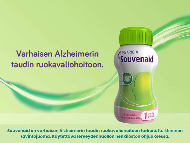 Souvenaid on kliininen ravintojuoma, joka on kehitetty tukemaan varhaista Alzheimerin tautia sairastavien henkilöiden ravitsemuksellisia tarpeita. Alzheimerin tautiin liittyy muutoksia aivojen toiminnassa, ja tutkimuksissa on havaittu, että sairastavien elimistössä voi esiintyä puutetta tietyistä ravintoaineista, jotka ovat tärkeitä aivojen normaalien biologisten prosessien ja hermosolujen välisten yhteyksien, eli synapsien, muodostumisen kannalta.