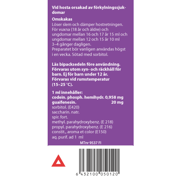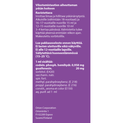 Lääkkeen käytön aikana voi joskus esiintyä päänsärkyä, huimausta, mahavaivoja tai väsymystä. Lääke voi heikentää ajokykyä reaktiokykyä hidastamalla. Sisältää etanolia.