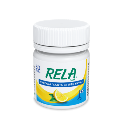 Rela-maitohappobakteerivalmisteet sisältävät kahta tutkittua ja korkealaatuista bakteerikantaa (Lactobacillus rhamnosus SP1 ja Bifidobacterium lactis BLC1) ja 3 miljardia bakteeria päiväannosta kohden. Rela Tabs -tuotteet sisältävät maitohappobakteerien lisäksi C-vitamiinia, joka on tärkeä vastustuskyvyn ylläpitäjä. Rela-tuotteet on valmistettu Suomessa ja niillä on avainlippumerkki.